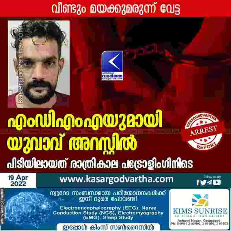 Arrest | എംഡിഎംഎയുമായി യുവാവ് അറസ്റ്റിൽ; പിടിയിലായത് രാത്രികാല പട്രോളിംഗിനിടെ