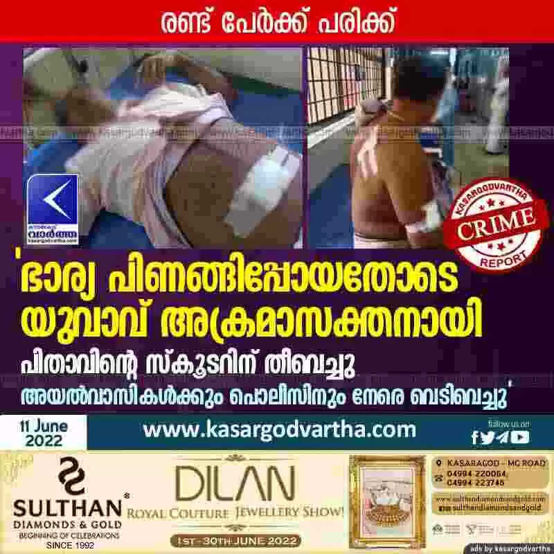 Keywords:  Kasaragod, Kerala, News, Top-Headlines, Ambalathara, Arrest,  Complaint, Youth, Parents, Police, Scooter, Young man became violent after his wife leave him.