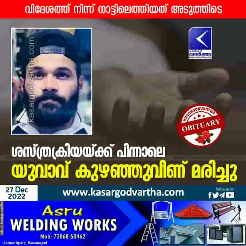 Youth Died | ശസ്ത്രക്രിയയ്ക്ക് പിന്നാലെ യുവാവ് കുഴഞ്ഞുവീണ് മരിച്ചു; വിദേശത്ത് നിന്ന് നാട്ടിലെത്തിയത് അടുത്തിടെ