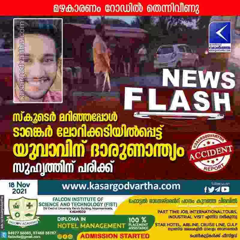 സ്കൂടെർ മറിഞ്ഞപ്പോൾ ടാങ്കെർ ലോറിക്കടിയിൽപ്പെട്ട് യുവാവിന് ദാരുണാന്ത്യം; സുഹൃത്തിന് പരിക്ക്