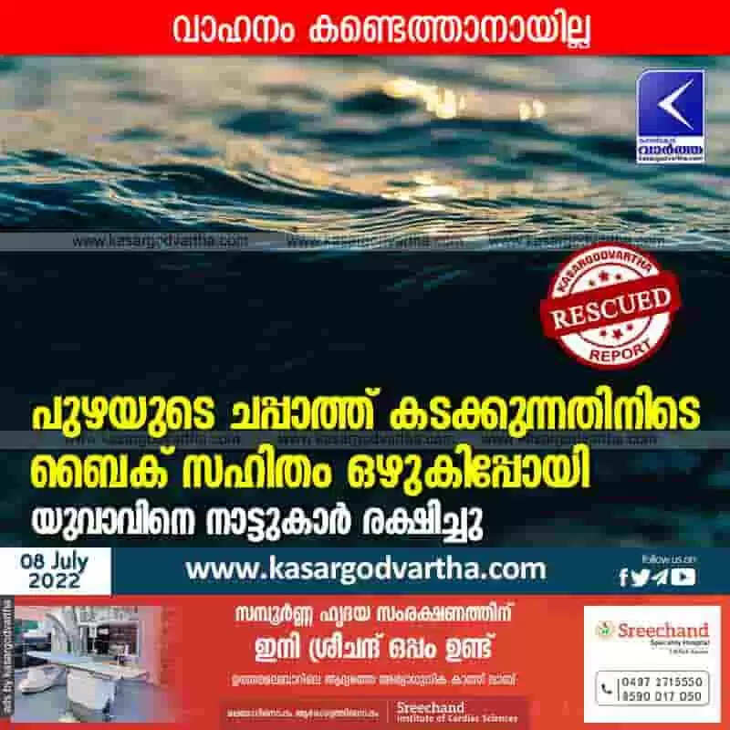 Keywords: News, Kerala, Kasaragod, Panathur, Top-Headlines, Tragedy, People, River, Accident, Rain, Young man swept away in the river along with bike; Rescued by peoples.