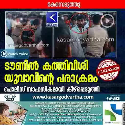 ടൗണിൽ കത്തിവീശി യുവാവിന്റെ പരാക്രമം; പൊലീസ് സാഹസികമായി കീഴ്പ്പെടുത്തി; കേസെടുത്തു