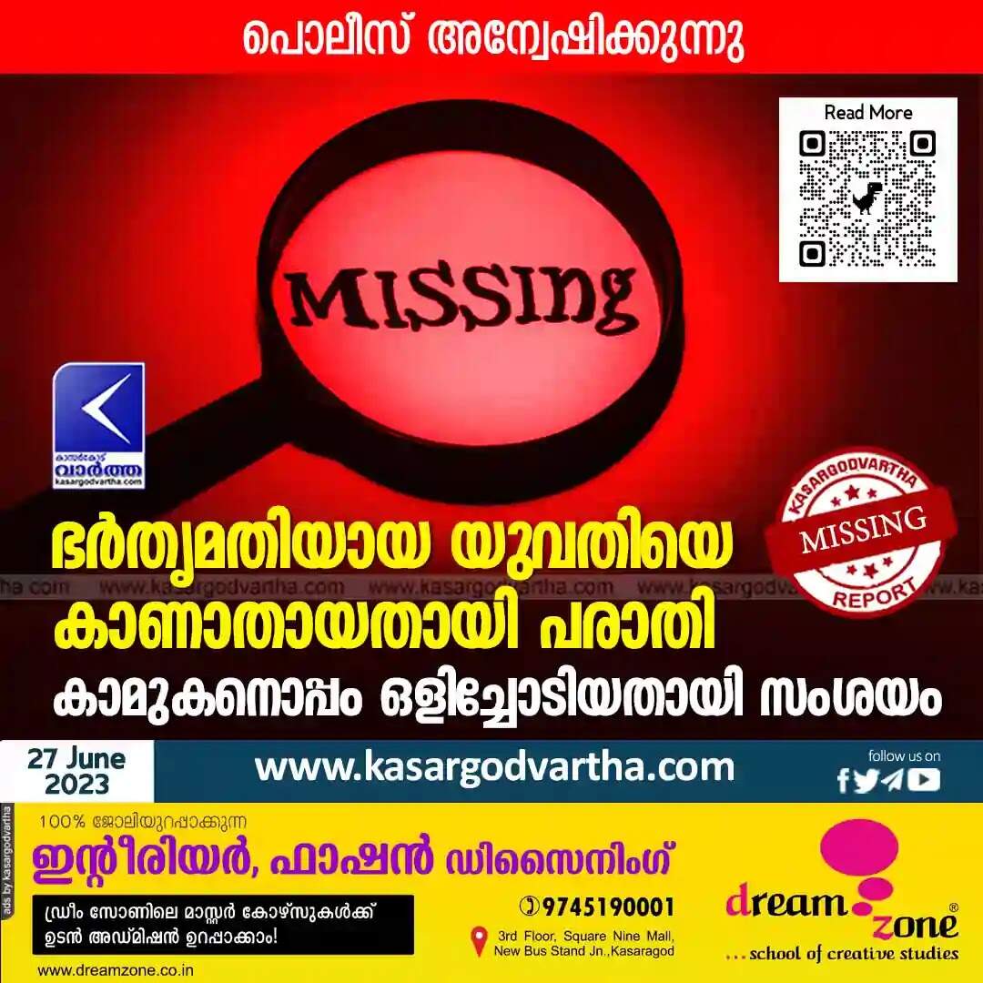 Missing Case | ഭർതൃമതിയായ യുവതിയെ കാണാതായതായി പരാതി; കാമുകനൊപ്പം ഒളിച്ചോടിയതായി സംശയം; പൊലീസ് അന്വേഷിക്കുന്നു