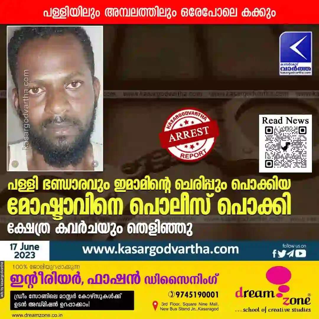 Arrested | പള്ളി ഭണ്ഡാരവും ഇമാമിന്റെ ചെരിപ്പും പൊക്കിയ മോഷ്ടാവിനെ പൊലീസ് പൊക്കി; ക്ഷേത്ര കവര്ചയും തെളിഞ്ഞു