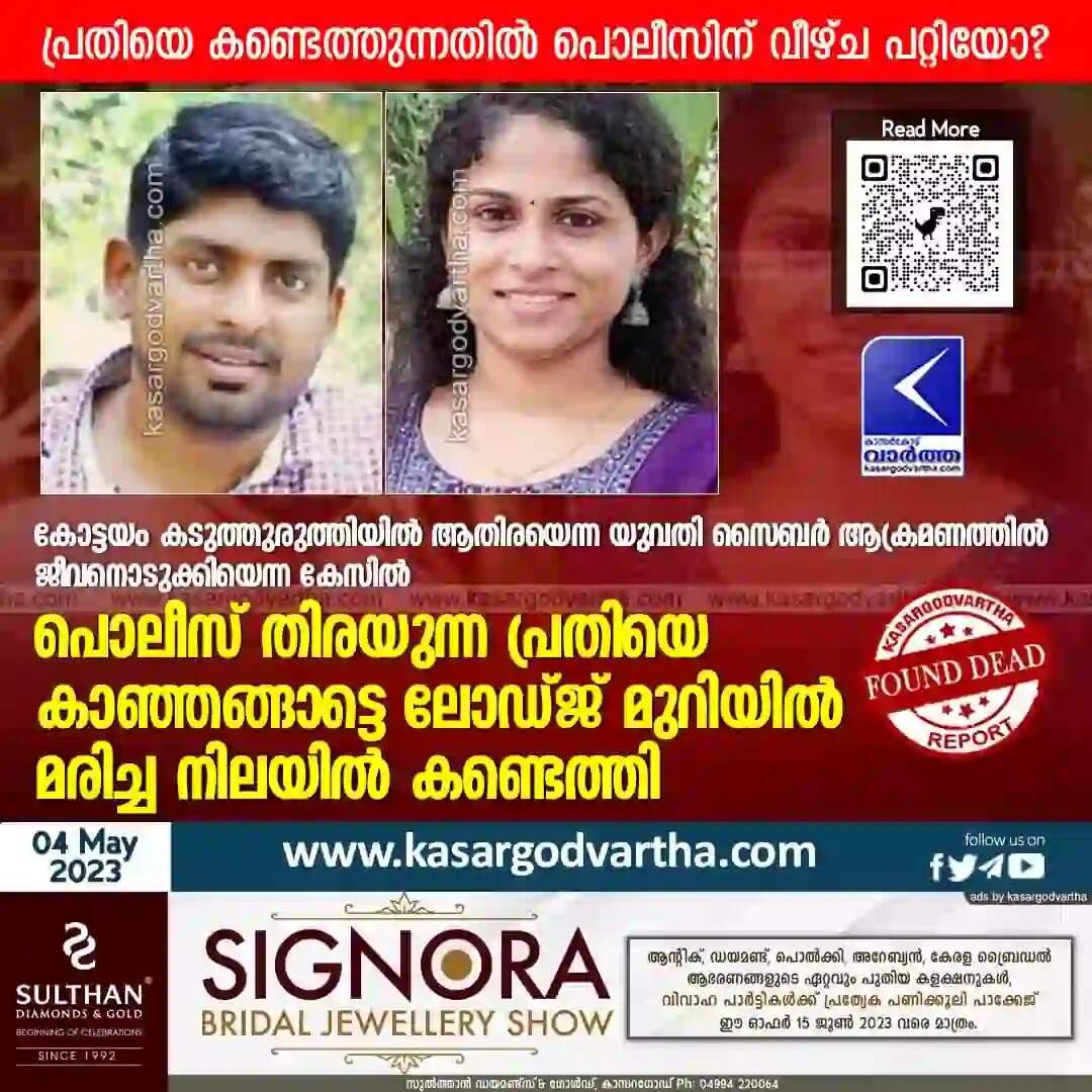 Found Dead | കോട്ടയം കടുത്തുരുത്തിയില് ആതിരയെന്ന യുവതി സൈബര് ആക്രമണത്തില് ജീവനൊടുക്കിയെന്ന കേസില് പൊലീസ് തിരയുന്ന പ്രതിയെ കാഞ്ഞങ്ങാട്ടെ ലോഡ്ജ് മുറിയില് മരിച്ച നിലയില് കണ്ടെത്തി