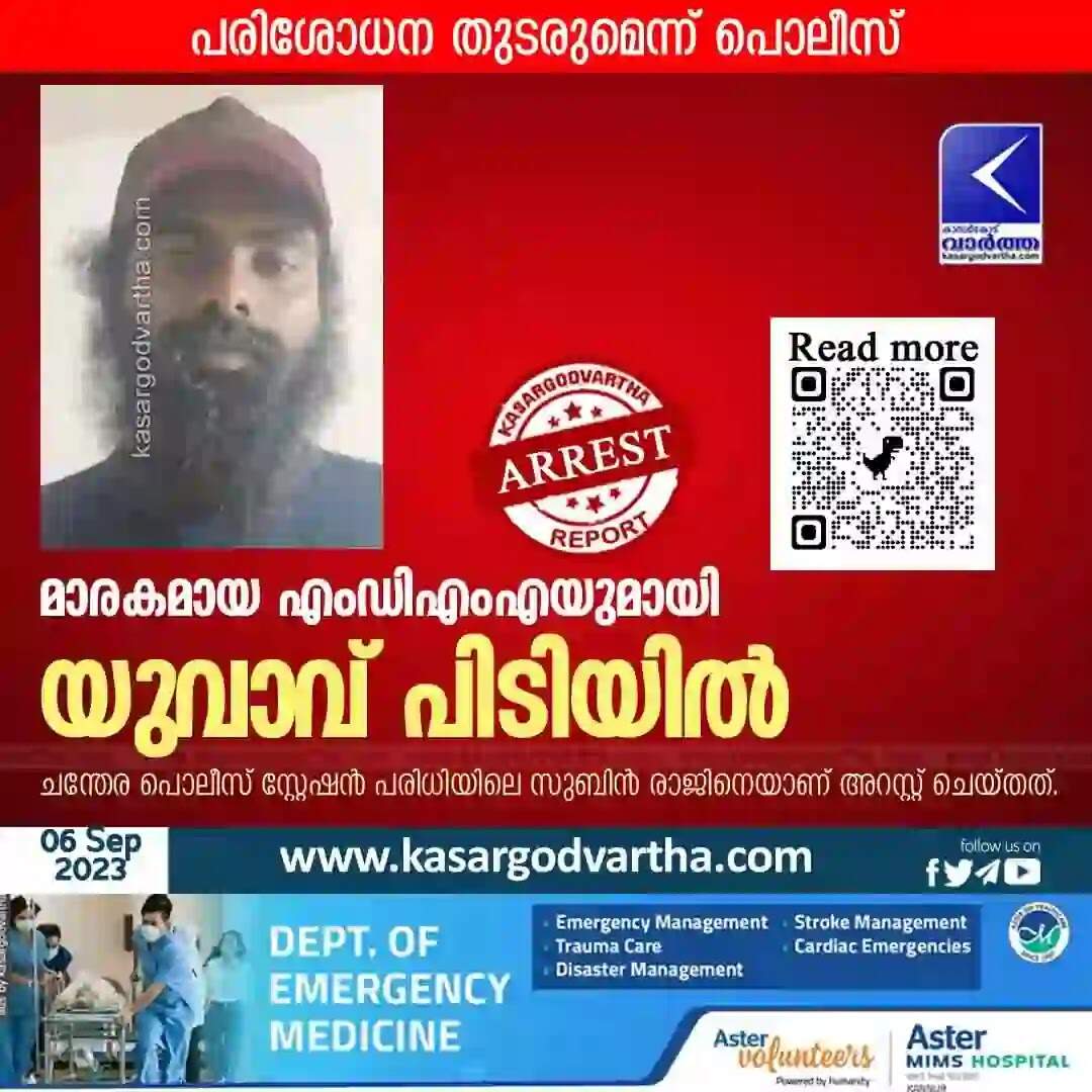 Arrested | മാരകമായ എംഡിഎംഎയുമായി യുവാവ് പിടിയിൽ