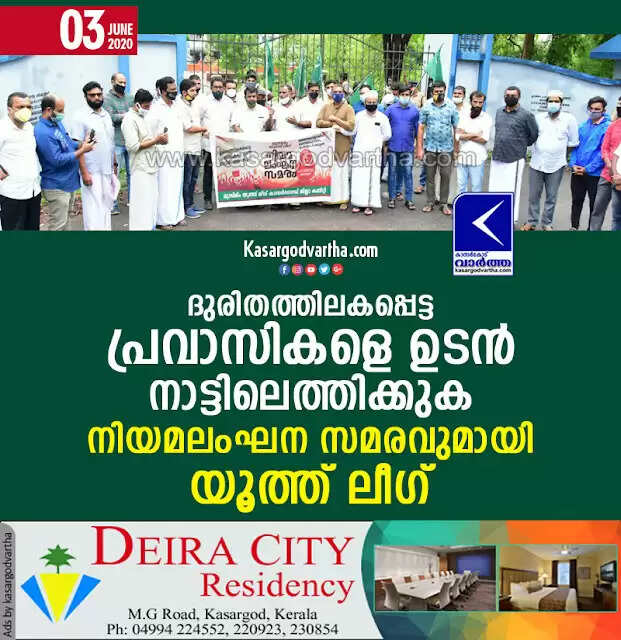 ദുരിതത്തിലകപ്പെട്ട പ്രവാസികളെ ഉടന് നാട്ടിലെത്തിക്കുക; നിയമലംഘന സമരവുമായി യൂത്ത് ലീഗ്