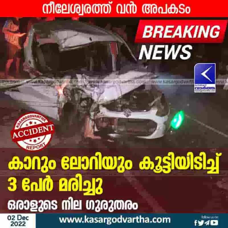Died | കാറും ലോറിയും കൂട്ടിയിടിച്ച് 3 പേര്‍ മരിച്ചു; ഒരാളുടെ നില ഗുരുതരം