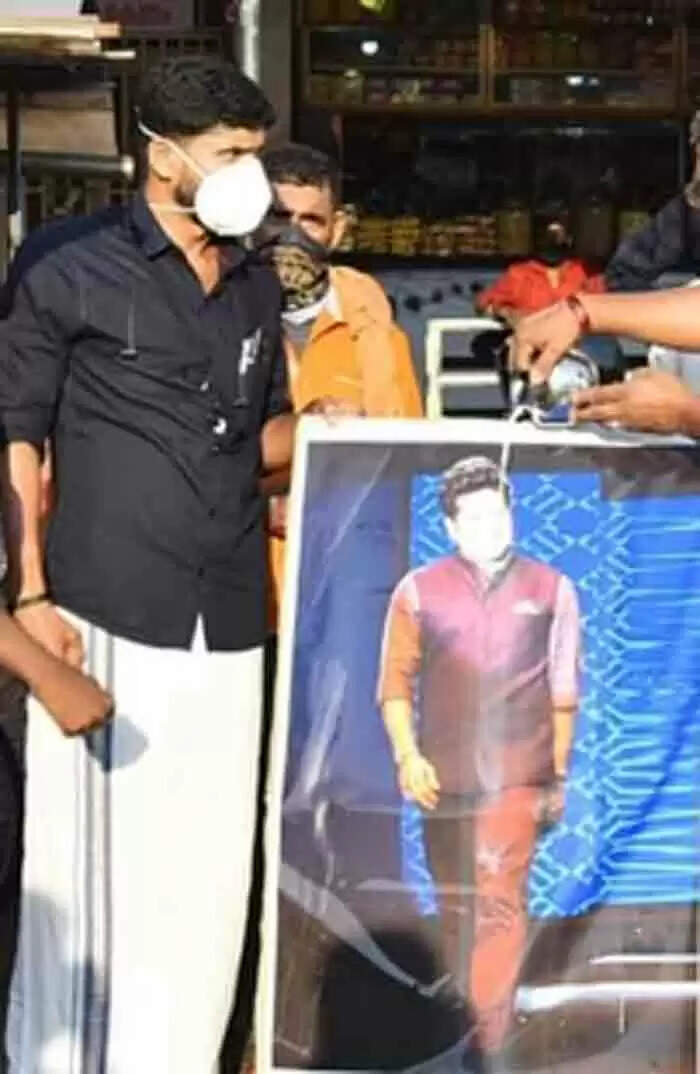 യൂത് കോൺഗ്രസ് കരി ഓയിൽ ഒഴിച്ചതിന് ബദലായി സച്ചിൻ ടെൻഡുൽകറിൻ്റെ ഫോടോയിൽ പാലഭിഷേകം നടത്തി യുവമോർച