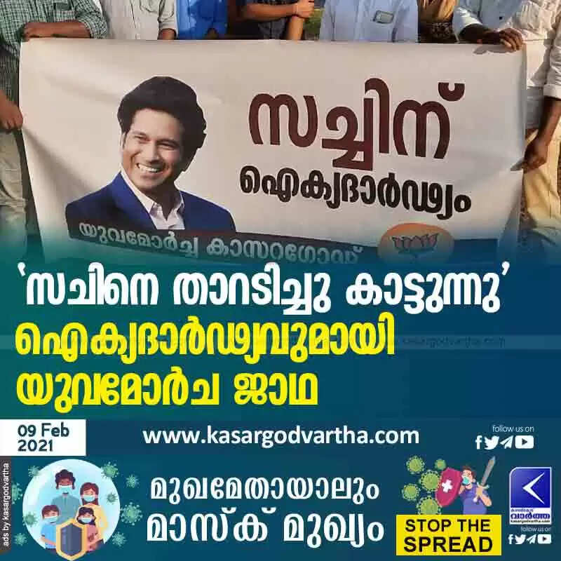 'സചിനെ താറടിച്ചു കാട്ടുന്നു' ഐക്യദാർഢ്യവുമായി യുവമോർച ജാഥ