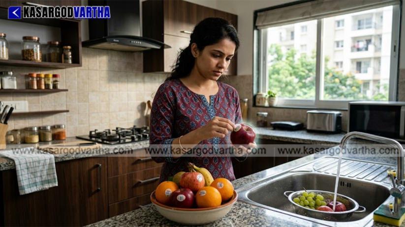 പഴങ്ങൾ വാങ്ങി വീട്ടിലെത്തിയാൽ ആദ്യം ചെയ്യേണ്ടത് അവയിലെ സ്റ്റിക്കറുകൾ ജാഗ്രതയോടെ നീക്കം ചെയ്യുക എന്നതാണ്. സ്റ്റിക്കർ ഇരുന്ന ഭാഗം പ്രത്യേകം ശ്രദ്ധിച്ച് കഴുകണം. കുറഞ്ഞത് അഞ്ച് മിനിറ്റെങ്കിലും ശുദ്ധമായ പൈപ്പ് വെള്ളത്തിൽ പഴങ്ങൾ കഴുകാൻ മറക്കരുത്.