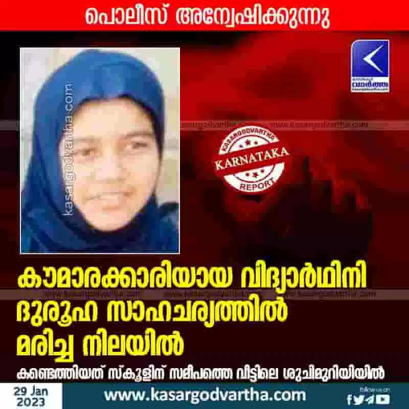 Keywords:  Latest-News, National, Karnataka, Mangalore, Died, Dead, Crime, Investigation, Student, Police, 16-year-old girl found dead inside toilet in Belthangady.