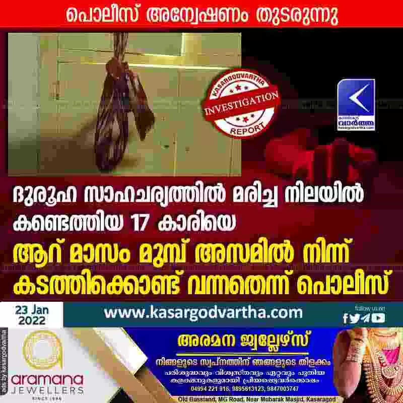 ദുരൂഹ സാഹചര്യത്തിൽ മരിച്ച നിലയിൽ കണ്ടെത്തിയ 17 കാരിയെ ആറ് മാസം മുമ്പ് അസമിൽ നിന്ന് കടത്തിക്കൊണ്ട് വന്നതെന്ന് പൊലീസ്