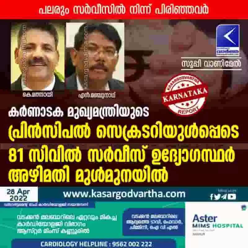 കർണാടക മുഖ്യമന്ത്രിയുടെ പ്രിൻസിപൽ സെക്രടറിയുൾപ്പെടെ 81 സിവിൽ സർവീസ് ഉദ്യോഗസ്ഥർ അഴിമതി മുൾമുനയിൽ