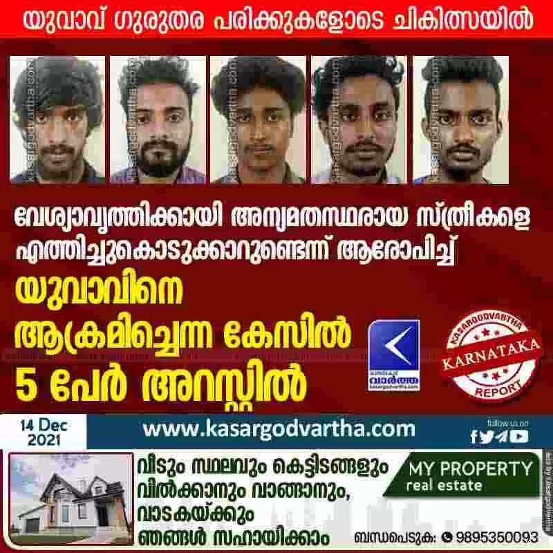 വേശ്യാവൃത്തിക്കായി അന്യമതസ്ഥരായ സ്ത്രീകളെ എത്തിച്ചുകൊടുക്കാറുണ്ടെന്ന് ആരോപിച്ച് യുവാവിനെ ആക്രമിച്ചെന്ന കേസിൽ 5 പേർ അറസ്റ്റിൽ