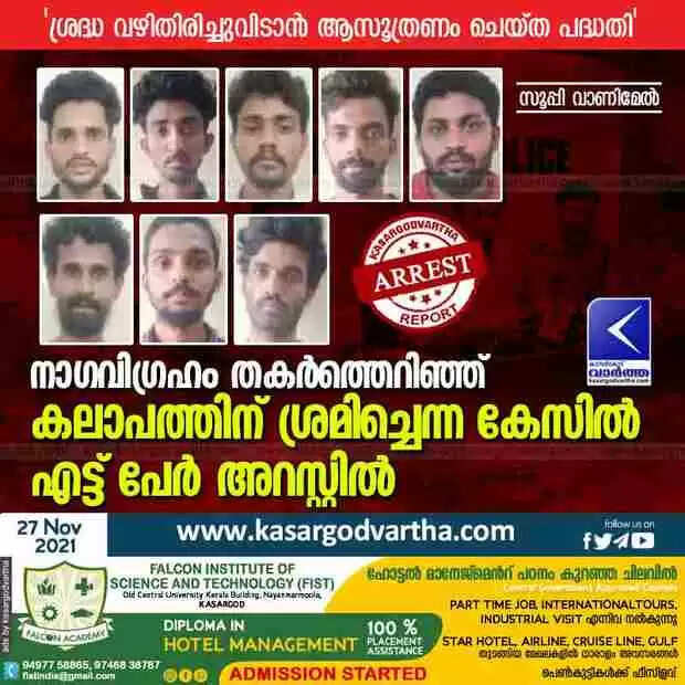 നാഗവിഗ്രഹം തകർത്തെറിഞ്ഞ് കലാപത്തിന് ശ്രമിച്ചെന്ന കേസിൽ എട്ട് പേർ അറസ്റ്റിൽ