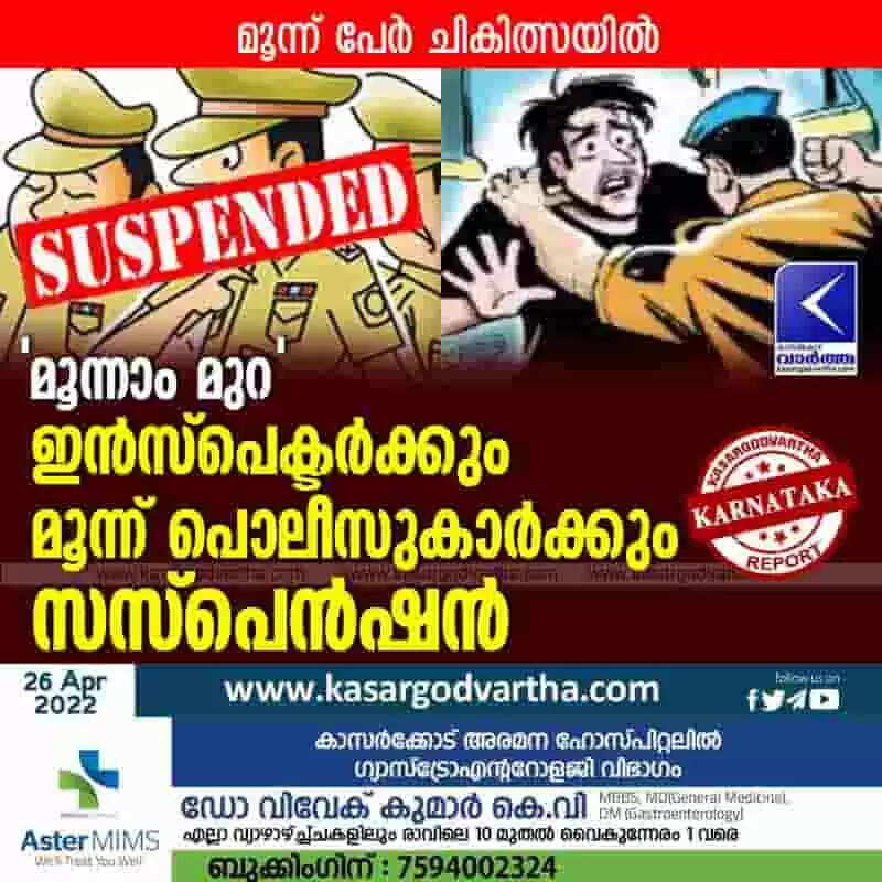 Keywords: News, National, Karnataka, Top-Headlines, Mangalore, Police, Suspension, Assault, Investigation, Bajpe, Bajpe Police inspector, 3 police personnel suspended on charge of assaulting 3 persons.
