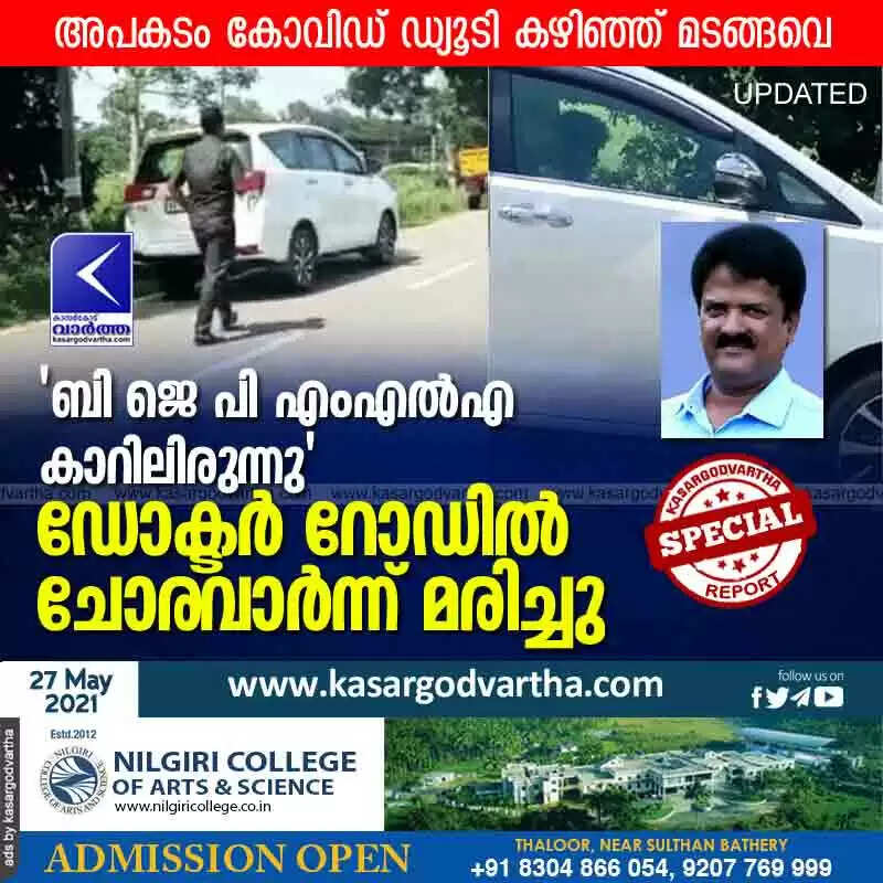 'ബി ജെ പി എംഎൽഎ കാറിലിരുന്നു'; ഡോക്ടർ റോഡിൽ ചോരവാർന്ന് മരിച്ചു