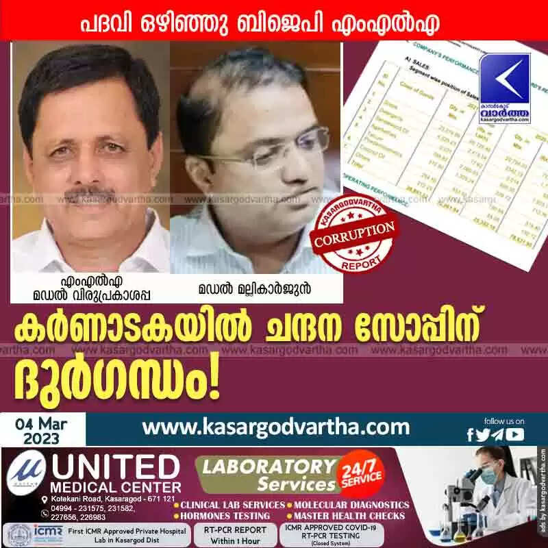 മംഗ്ളുറു: (www.kasargodvartha.com) സുഗന്ധം പരത്തേണ്ട ചന്ദന സോപിന് കർണാടകയിൽ അഴിമതി ദുർഗന്ധം. കർണാടക സോപ്സ് ആൻഡ് ഡിറ്റർജന്റ്സ് ലിമിറ്റഡ് (KSDL) എന്ന പൊതുമേഖല സ്ഥാപനത്തിൽ അസംസ്കൃത സാധനങ്ങൾ എത്തിക്കുന്നതിനുള്ള കരാറുമായി ബന്ധപ്പെട്ട 80 ലക്ഷം രൂപയുടെ അഴിമതിയാണ് ഒടുവിൽ പുറത്തായത്. മകൻ 40ലക്ഷം രൂപ ആദ്യ ഗഡു കൈക്കൂലി വാങ്ങുന്നത് ലോകായുക്ത കൈയോടെ പിടികൂടിയതോടെ സ്ഥാപനത്തിന്റെ ചെയർമാൻ സ്ഥാനം ബിജെപിയുടെ ചന്നഗിരി എംഎൽഎ മഡൽ വിരുപ്രകാശപ്പ രാജിവെച്ചു. കാബിനറ്റ് റാങ്ക് മന്ത്രിയുടെ എല്ലാ സൗകര്യങ്ങളും 2020 മുതൽ അനുഭവിച്ചു പോന്ന പദവിയാണിത്.