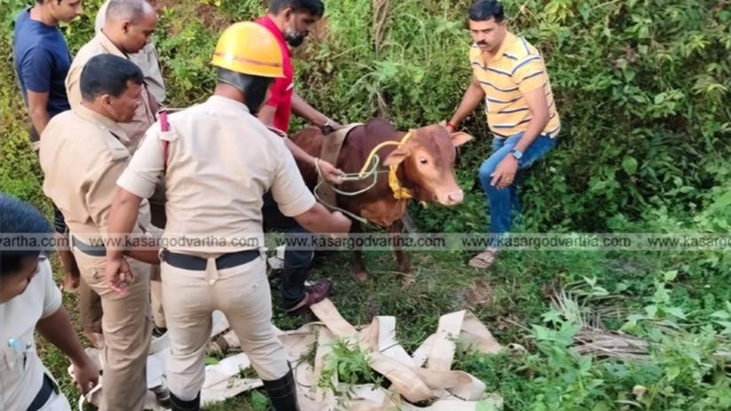 സോണങ്കേരിയിൽ ഫയർ ഫോഴ്സിന്റെ 'ഗോരക്ഷ'! 15 അടി താഴ്ചയുള്ള കിണറ്റിൽ വീണ പശുക്കുട്ടിയെ സാഹസികമായി പുറത്തെടുത്തു