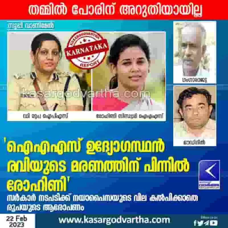 Fight | 'ഐഎഎസ് ഉദ്യോഗസ്ഥന് രവിയുടെ മരണത്തിന് പിന്നില് രോഹിണി'; സര്കാര് നടപടിക്ക് നയാപൈസയുടെ വില കല്പിക്കാതെ രൂപയുടെ ആരോപണം
