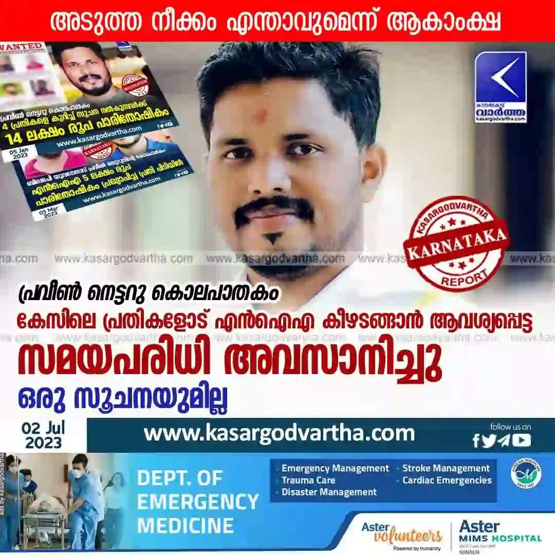 Deadline | പ്രവീണ്‍ നെട്ടറു കൊലപാതകം: കേസിലെ പ്രതികളോട് എന്‍ഐഎ കീഴടങ്ങാന്‍ ആവശ്യപ്പെട്ട സമയപരിധി അവസാനിച്ചു, ഒരു സൂചനയുമില്ല; അടുത്ത നീക്കം എന്താവുമെന്ന് ആകാംക്ഷ