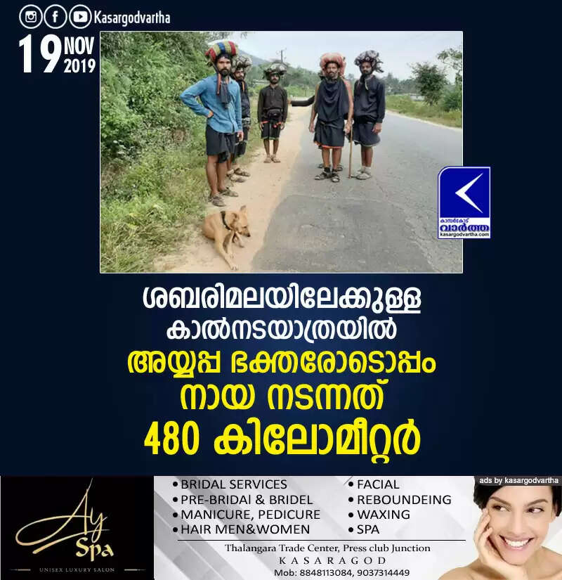 ശബരിമലയിലേക്കുള്ള കാല്നടയാത്രയില് അയ്യപ്പ ഭക്തരോടൊപ്പം നായ നടന്നത് 480 കിലോമീറ്റര്
