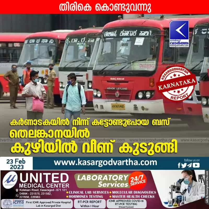 Bus Found | കർണാടകയിൽ നിന്ന് കട്ടോണ്ടുപോയ ബസ് തെലങ്കാനയിൽ കുഴിയിൽ വീണ് കുടുങ്ങി