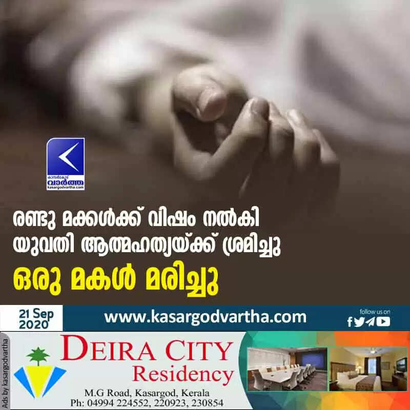 രണ്ടു മക്കൾക്ക് വിഷം നൽകി യുവതി ആത്മഹത്യയ്ക്ക് ശ്രമിച്ചു; ഒരു മകൾ മരിച്ചു