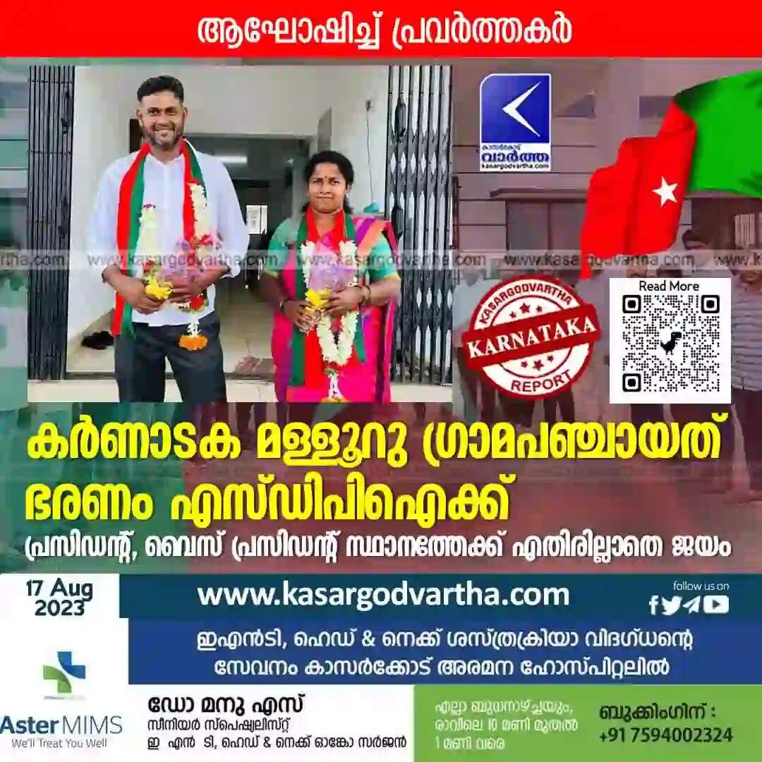 Malluru | കര്ണാടക മള്ളൂറു ഗ്രാമപഞ്ചായത് ഭരണം എസ് ഡി പി ഐക്ക്; പ്രസിഡന്റ്, വൈസ് പ്രസിഡന്റ് സ്ഥാനത്തേക്ക് എതിരില്ലാതെ ജയം