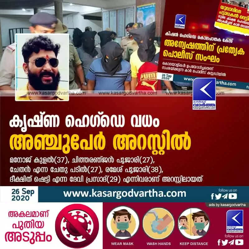 കിഷൻ ഹെഗ്ഡെ വധം: അഞ്ചുപേര് അറസ്റ്റില്