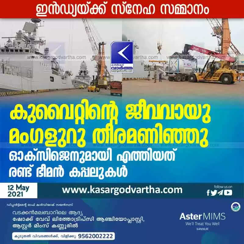 Keywords: Kuwait, Mangalore, COVID-19, Health, Government, Helping hands, Distribution, Karnataka, Malayalam, News, Kuwait's helping hand; Two giant ships with oxygen reaches at Mangalore coast.