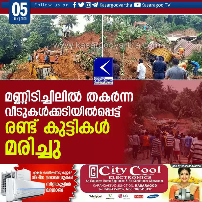മണ്ണിടിച്ചിലില് തകർന്ന വീടുകൾക്കടിയിൽപ്പെട്ട് രണ്ട് കുട്ടികള് മരിച്ചു