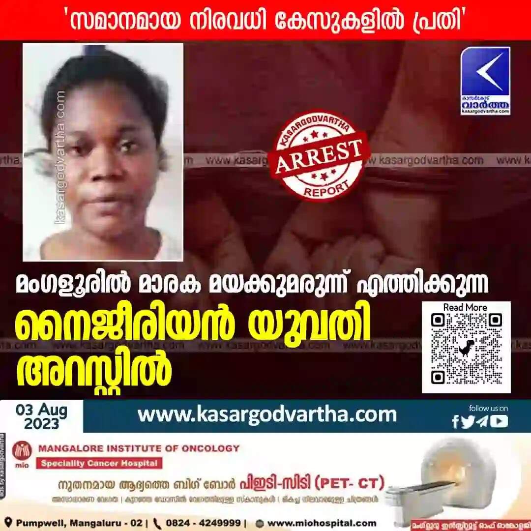 Arrested | മംഗളൂരില്‍ മാരക മയക്കുമരുന്ന് എത്തിക്കുന്ന നൈജീരിയന്‍ യുവതി അറസ്റ്റില്‍