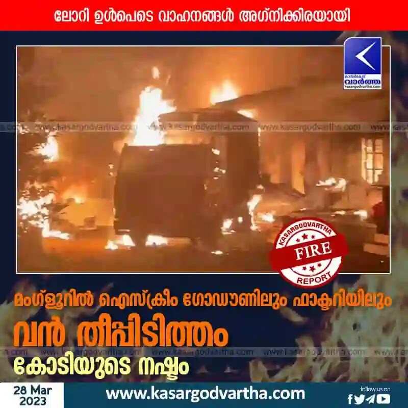 Fire | മംഗ്ളൂറിൽ ഐസ്ക്രീം ഗോഡൗണിലും ഫാക്ടറിയിലും വൻ തീപ്പിടിത്തം; കോടിയുടെ നഷ്ടം