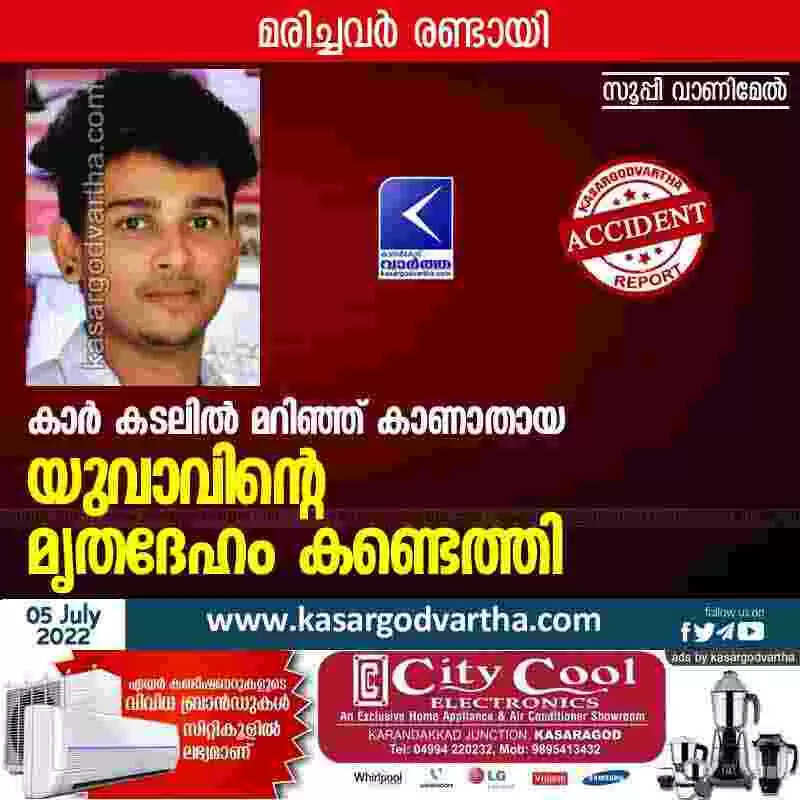 Body found | കാർ കടലിൽ മറിഞ്ഞ് കാണാതായ യുവാവിന്റെ മൃതദേഹം കണ്ടെത്തി