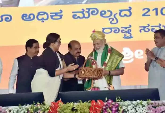 മുഖ്യമന്ത്രി ബസവരാജ് ബൊമ്മൈയും കേന്ദ്ര മന്ത്രി നിഥിന് ഗഡ്കരിയും ചടങ്ങില് പങ്കെടുത്തു. ബിജെപി പിന്തുണയോടെ മാണ്ട്യയില് നിന്ന് വിജയിച്ച സുമലത എം പി നരേന്ദ്ര മോദിക്ക് ചടങ്ങില് ഉപഹാരം സമര്പ്പിച്ചു. അവര് ബിജെപിയില് ചേര്ന്നു എന്ന ഓളം നിയമസഭ തെരഞ്ഞെടുപ്പി സൃഷ്ടിക്കാന് കഴിയും. മോദിയുടെ റോഡ്ഷോ വീക്ഷിക്കാന് എത്തിയ സ്ത്രീയുടെ കൂടെയുണ്ടായിരുന്ന കുട്ടി ധരിച്ച കറുപ്പ് ടി ഷര്ട് സുരക്ഷാ ഉദ്യോഗസ്ഥര് രണ്ടു തവണയാണ് അഴിപ്പിച്ചത്. കറുപ്പ് കണ്ടപ്പോള് മെറ്റല് ഡിറ്റക്ടര് ഉപയോഗിച്ച സുരക്ഷാ സേന ടി ഷര്ട് അഴിക്കാന് കുട്ടിയുടെ മാതാവിനോട് ആവശ്യപ്പെട്ടു. പരിശോധന കഴിഞ്ഞ് വീണ്ടും ധരിപ്പിക്കുന്നത് തിരിച്ചു വന്ന സേന തടഞ്ഞു. മോദി കടന്നു പോവും വരെ കുട്ടി അര്ധനഗ്നായി നിന്നു.