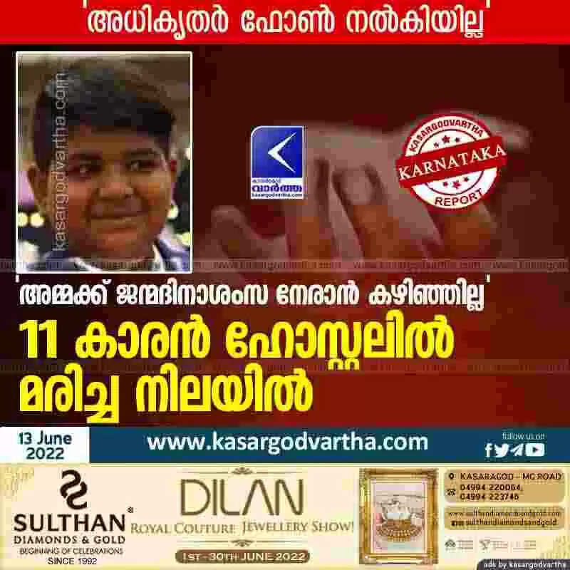 Boy kills self | 'അമ്മക്ക് ജന്മദിനാശംസ നേരാൻ കഴിഞ്ഞില്ല'; 11 കാരൻ ഹോസ്റ്റലിൽ മരിച്ച നിലയിൽ