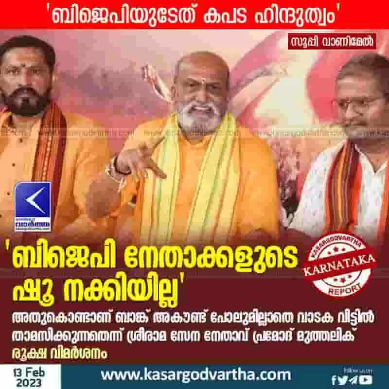 Pramod Mutalik | 'ബിജെപി നേതാക്കളുടെ ഷൂ നക്കിയില്ല'; അതുകൊണ്ടാണ് ബാങ്ക് അകൗണ്ട് പോലുമില്ലാതെ വാടക വീട്ടില് താമസിക്കുന്നതെന്ന് ശ്രീരാമ സേന നേതാവ് പ്രമോദ് മുത്തലിക്; രൂക്ഷ വിമര്ശനം