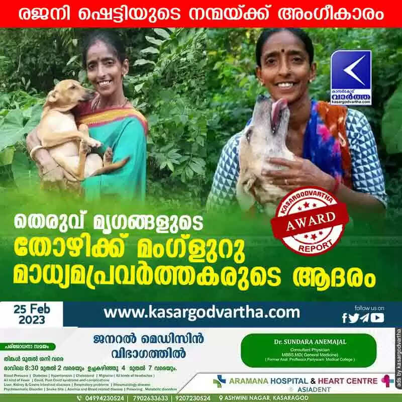 Award | തെരുവ് മൃഗങ്ങളുടെ തോഴിക്ക് മംഗ്ളുറു മാധ്യമപ്രവർത്തകരുടെ ആദരം
