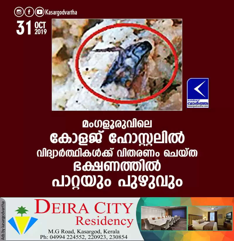 മംഗളൂരുവിലെ കോളജ് ഹോസ്റ്റലില്‍ വിദ്യാര്‍ത്ഥികള്‍ക്ക് വിതരണം ചെയ്ത ഭക്ഷണത്തില്‍ പാറ്റയും പുഴുവും