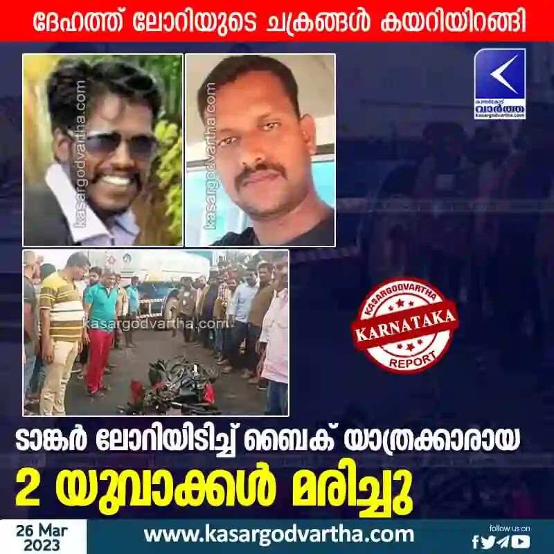ഉഡുപിയില് നിന്ന് വരികയായിരുന്ന ടാങ്കര് ലോറി അതേ ദിശയില് സഞ്ചരിച്ച ബൈകില് ഇടിക്കുകയായിരുന്നു എന്ന് കൗപ് പൊലീസ് പറഞ്ഞു. തെറിച്ചുവീണ യുവാക്കളുടെ ദേഹത്ത് ടാങ്കര് ലോറിയുടെ പിന് ചക്രങ്ങള് കയറിയിറങ്ങി. പൊലീസ് കേസെടുത്ത് അന്വേഷിക്കുന്നു.