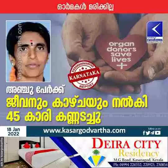 അഞ്ചു പേർക്ക് ജീവനും കാഴ്ചയും നൽകി 45 കാരി കണ്ണടച്ചു