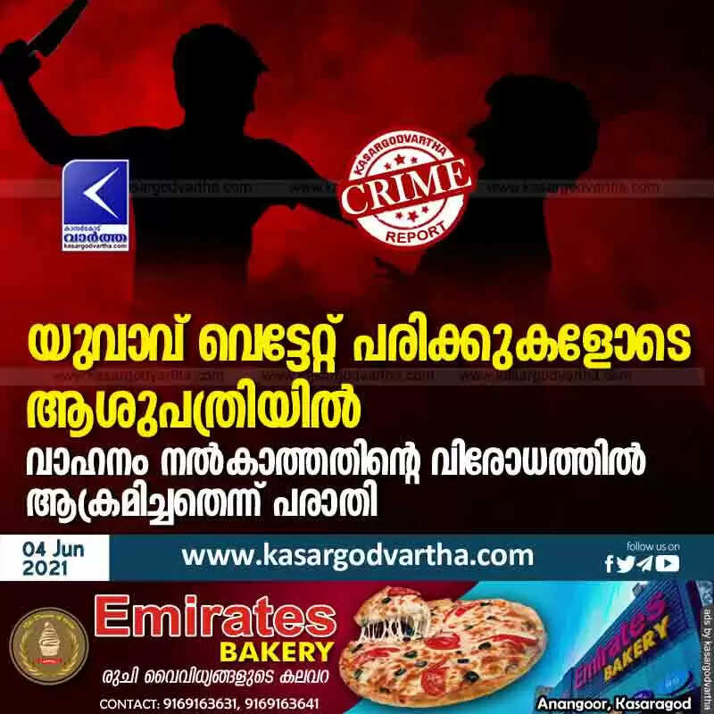Keywords: Kasaragod, Melparamba, Hospital, Stabbed, Attack, Vehicle, Mangalore, Rent, Police, Case, Young man stabbed and hospitalized.