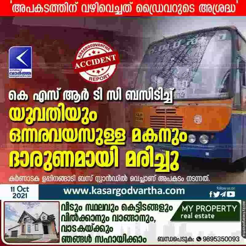 Keywords:  Mangalore, Karnataka, News, Top-Headlines, Bus, Youth, Busstand, Doctor, Accident, Police, Custody, Young woman and her one-and-a-half-year-old son died in KSRTC bus accident.