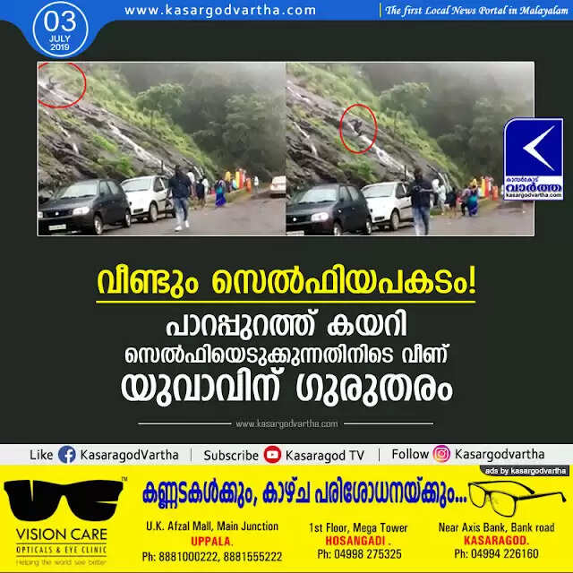 വീണ്ടും സെല്ഫിയപകടം! പാറപ്പുറത്ത് കയറി സെല്ഫിയെടുക്കുന്നതിനിടെ വീണ് യുവാവിന് ഗുരുതരം