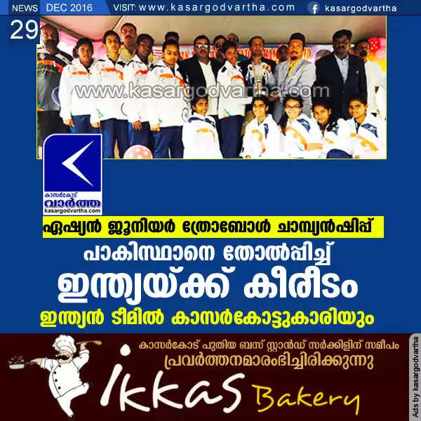 ഏഷ്യന് ജൂനിയര് ത്രോബോള് ചാമ്പ്യന്ഷിപ്പ്: പാകിസ്ഥാനെ തോല്പ്പിച്ച് ഇന്ത്യയ്ക്ക് കീരീടം; ഇന്ത്യന് ടീമില് കാസര്കോട്ടുകാരിയും