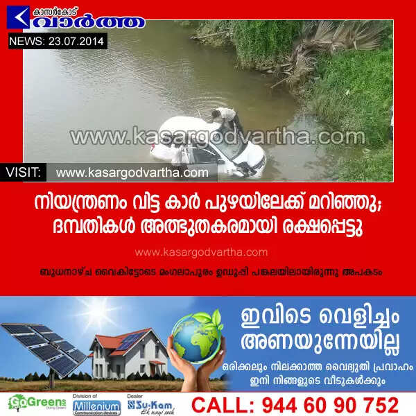 നിയന്ത്രണം വിട്ട കാര്‍ പുഴയിലേക്ക് മറിഞ്ഞു; ദമ്പതികള്‍ അത്ഭുതകരമായി രക്ഷപ്പെട്ടു