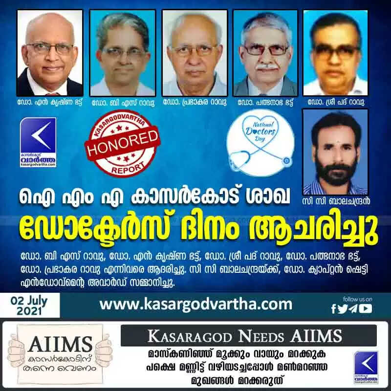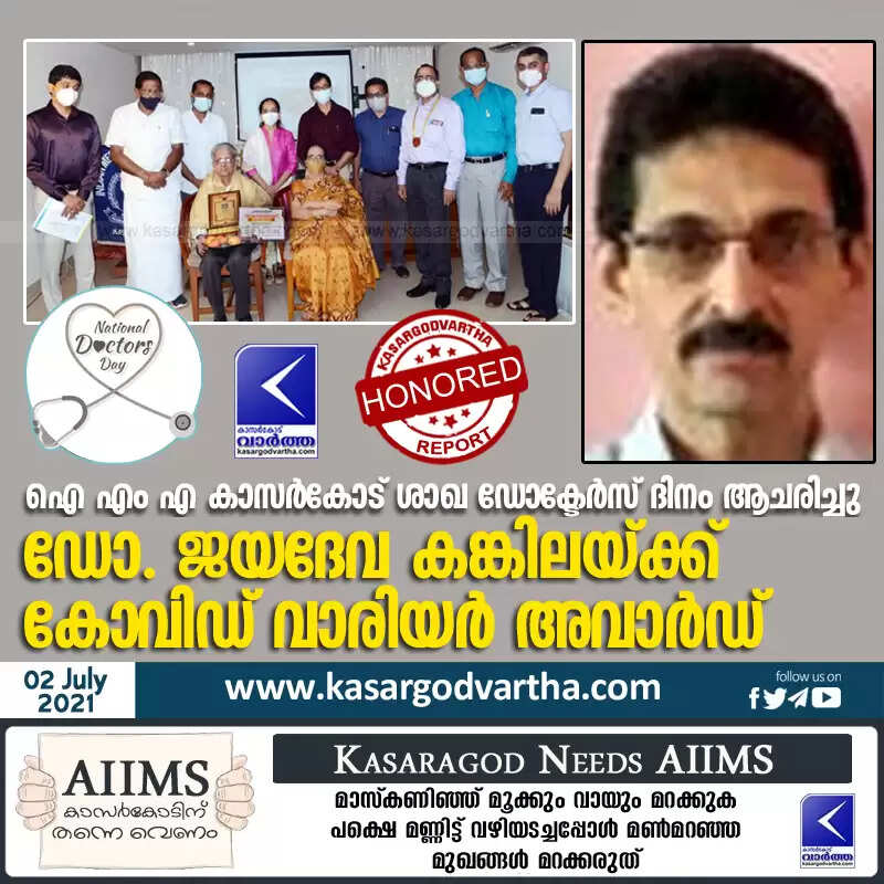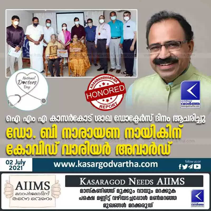 ഐ എം എ കാസർകോട് ശാഖ ഡോക്ടേർസ് ദിനം ആചരിച്ചു; ഡോ. ബി നാരായണ നായികിന് കോവിഡ് വാരിയർ അവാർഡ്