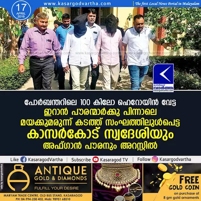 പോര്‍ബന്തറിലെ 100 കിലോ ഹെറോയിന്‍ വേട്ട; ഇറാന്‍ പൗരന്മാര്‍ക്കു പിന്നാലെ മയക്കുമരുന്ന് കടത്ത് സംഘത്തിലുള്‍പെട്ട കാസര്‍കോട് സ്വദേശിയും അഫ്ഗാന്‍ പൗരനും അറസ്റ്റില്‍